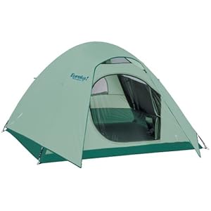 A great choice for car camping, or for use as a family base camp, the Eureka Tetragon 9 rectangular dome tent comfortably sleeps four-to-five people. The double-coated StormShield polyester hooded fly, which allows the front and rear windows to remain open even in the rain, and the polyester bathtub floor combine to provide excellent weather protection. This free-standing, two-pole tent is quick and easy to set up with a durable shockcorded fiberglass frame, ring and pin attachments, and color-coded webbing.