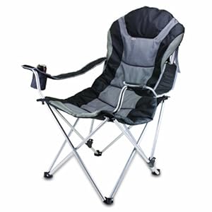 This Picnic Time Reclining Camp Chair is no ordinary camp chair. It features a folding steel frame that can hold up to 300 pounds, a padded seat and back rest covered in durable 600D polyester canvas. Three seating positions add to this chair's functionality, along with the adjustable armrests, an insulated drink holder in the right armrest, a large zippered pocket on back of chair, and a matching storage tote with carrying strap. The Reclining Camp Chair is great as a spectator chair at sporting events or for outdoor activity such as lounging by the lake or beach, camping and fishing. Throw this chair in the back end of the car, so you are never without it!